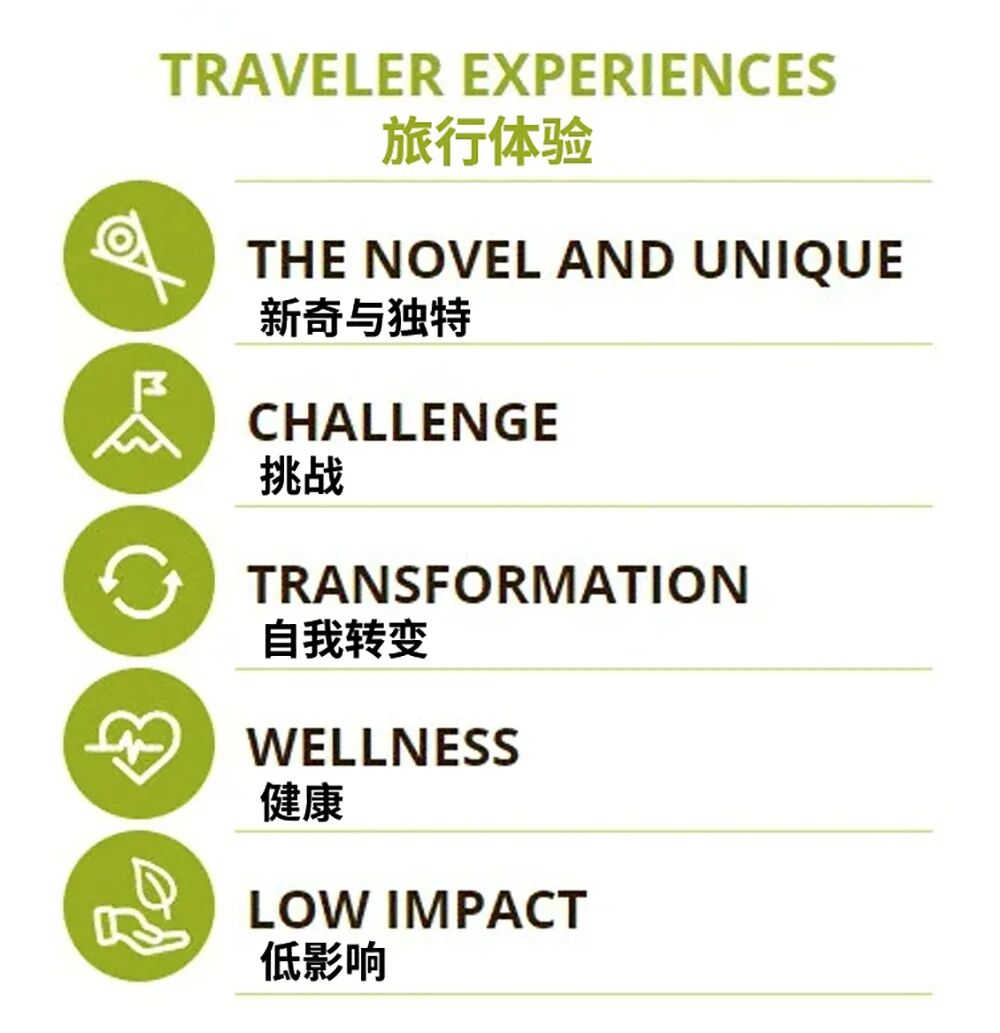 在探险旅游行业协会(ATTA)定义中,AT由以下三个要素中的两个或多个组成:活动、自然和跨文化体验这种旅游方式,旨在让游客与当地人一起体验该地区独特的自然和文化,并实现自己的自我转变和成长。