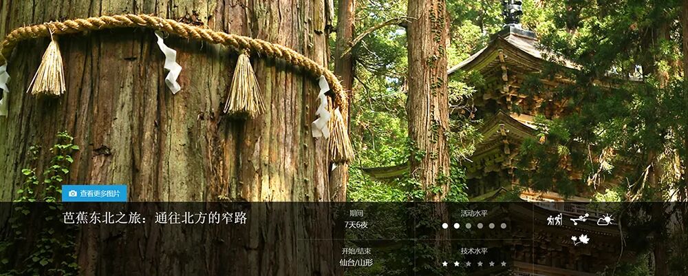游客通过参与12人内的小型团,在7-10日内的徒步游中,享受专业知识储备领队的讲解和深度体验(比如追寻松尾芭蕉诗歌游记作品的「芭蕉之旅」)。