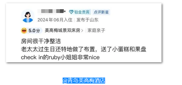 针对不同类型客人的喜好,酒店还可以提供个性化的客房好物。比如给女性客人准备面膜、香薰精油,给儿童准备专用拖鞋、牙刷等。另外作为文化酒店,苏州南园宾馆还在客房内放置熏香炉与上等檀香,提供沉浸式的文化体验。为了给客人留下良好印象,酒店可以客房内放置一些不易变质的欢迎水果、点心和饮品。请注意,在放水果时可以同时准备刨子刀,方便客人食用。另外在伴手礼的选择上,可以选择方便携带,而且具有当地特色或酒店特色的物品,比如纪念玩偶、书签、明信片等,让客人在离开时能带走一份美好的回忆。比如黄山悦榕庄酒店结合本土特色推出了制作版画、徽墨、竹雕等文化体验活动,同时本地文化伴手礼也能在精品阁买到。对于客人的生日或纪念日,可以通过特殊布置凸显仪式感。比如客房部可以用花瓣、气球进行点缀,放上酒店的欢迎糖果。正如青岛美高梅酒店的客人在好评中分享的,”在老人生日时特地做了布置,送了小蛋糕和果盘“。