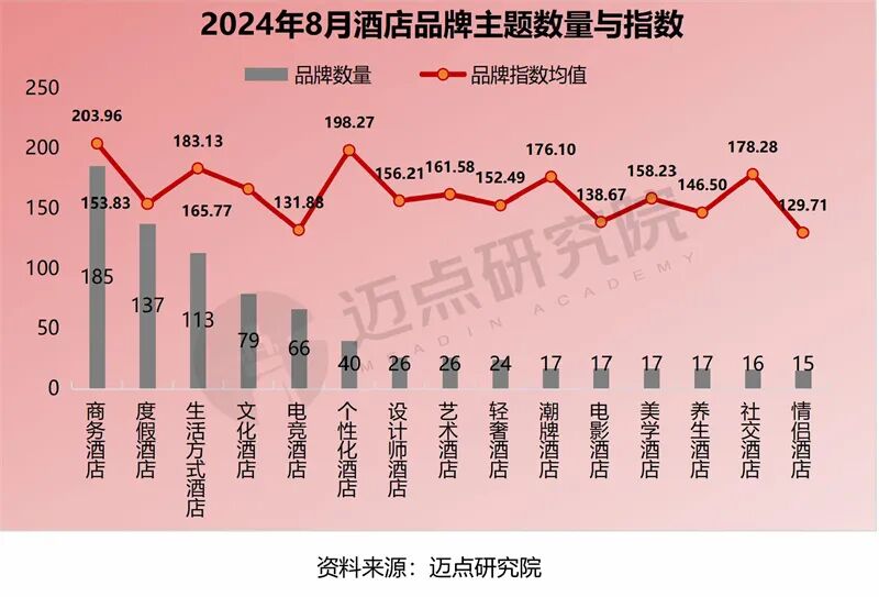 品牌数量涨幅情况:商务酒店(+19)、度假酒店(+6)、电竞酒店(+3)、生活方式酒店(+3)、潮牌酒店(+1)、文化酒店(+1)、艺术酒店(+1)、社交酒店(-1)。品牌指数均值涨幅情况:商务酒店(+4.07%)、社交酒店(+1.55%)、电影酒店(+0.40%)、养生酒店(+0.37%)、电竞酒店(+0.27%)、艺术酒店(+0.19%)、美学酒店(+0.18%)、生活方式酒店(-0.04%)、个性化酒店(-0.20%)、度假酒店(-0.36%)、情侣酒店(-0.44%)、轻奢酒店(-2.02%)、文化酒店(-2.03%)、设计师酒店(-2.07%)、潮牌酒店(-2.53%)。