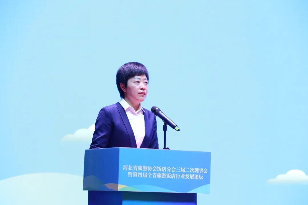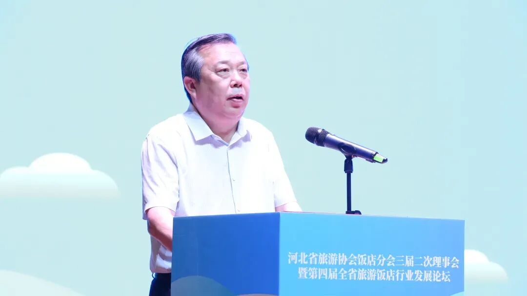 河北省旅游协会会长翟玉虎发表致辞,推动饭店与文化、科技融合,打造特色酒店,培育消费新场景,促进经济发展,构筑精神家园。祝贺活动成功,望凝聚共识,推动饭店业高质量发展。