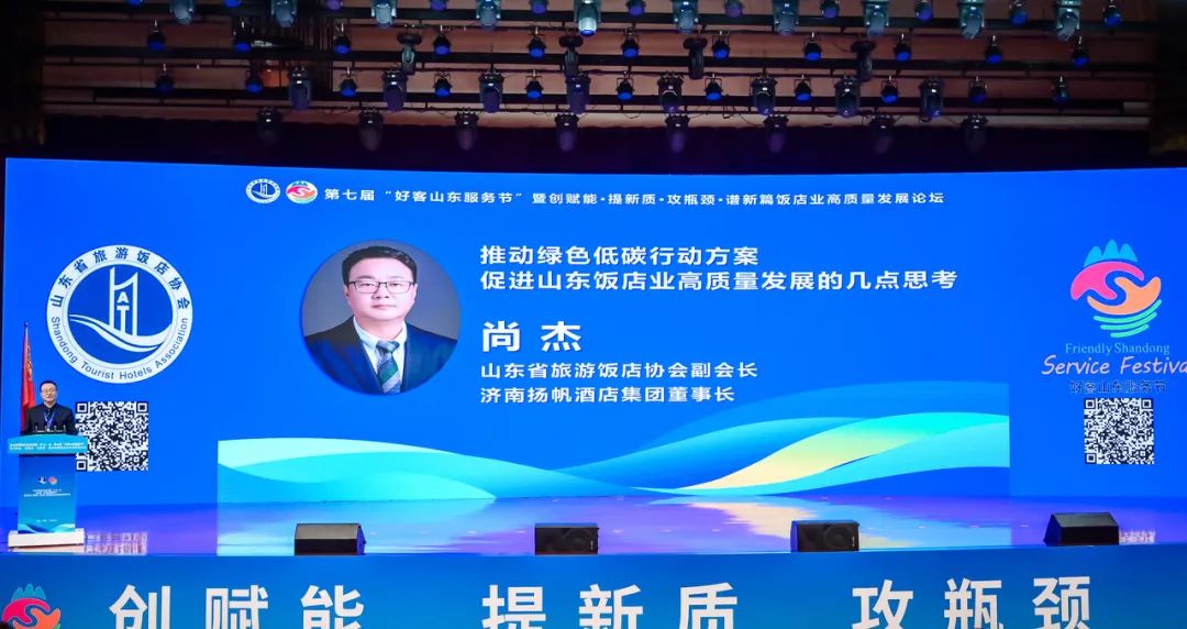 山东省旅游饭店协会副会长、乐朋品牌创始人、扬帆酒店集团董事长尚杰分享《推动绿色低碳行动方案 促进山东饭店业高质量发展的几点思考》,从行业现状、饭店业能源绿色低碳发展思路、案例分享等方面进行方案的讲解,助力饭店节能减排、降本增效。