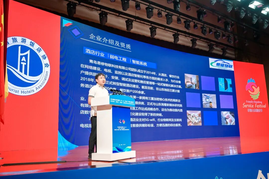 青岛易修物联科技有限公司总经理冯晓天分享《响应国家政策:推动酒店设备大规模以旧换新及智能千兆5G样板店免费投资》,提出在不增加饭店经营成本的基础上,针对弱电设备和电视设备老化严重、网络信号差、智能化不足等痛点问题进行改造赋能。