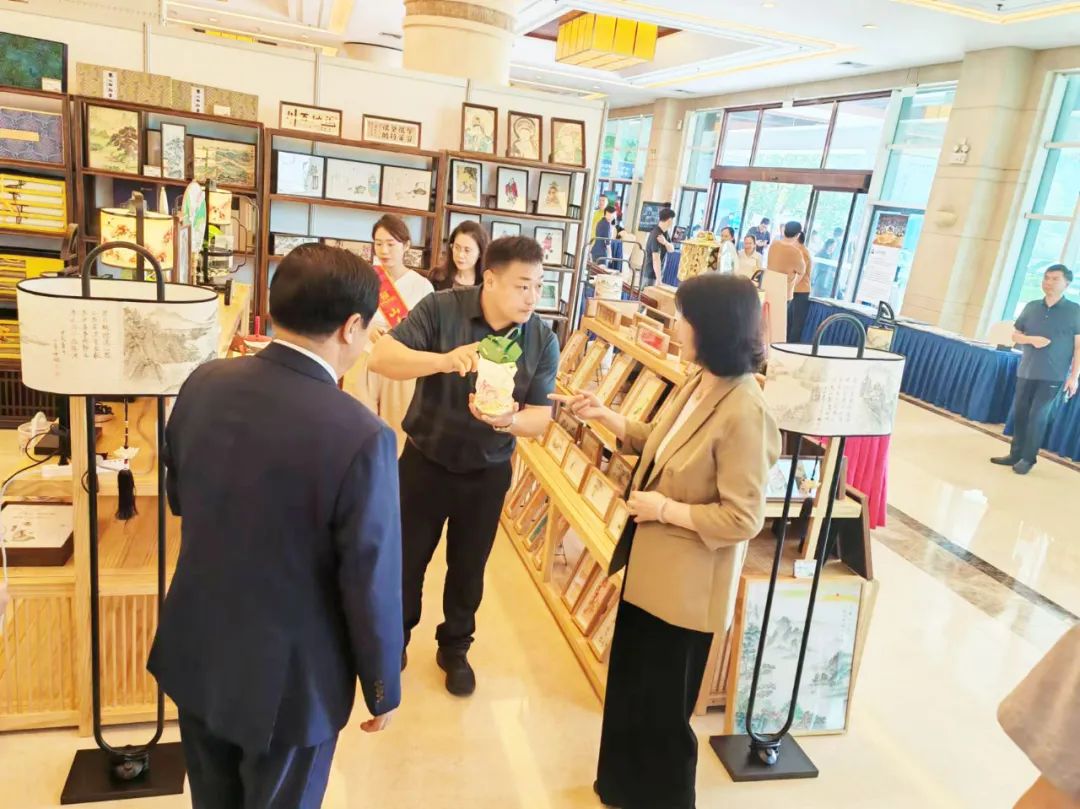山东玖舍文化艺术有限公司总经理、中国孔子书画院院长贾南进行山东孔子书画院介绍,卧尔康家居用品有限公司总经理徐康分享《卧尔康U眠房重塑酒店增益新生态》。