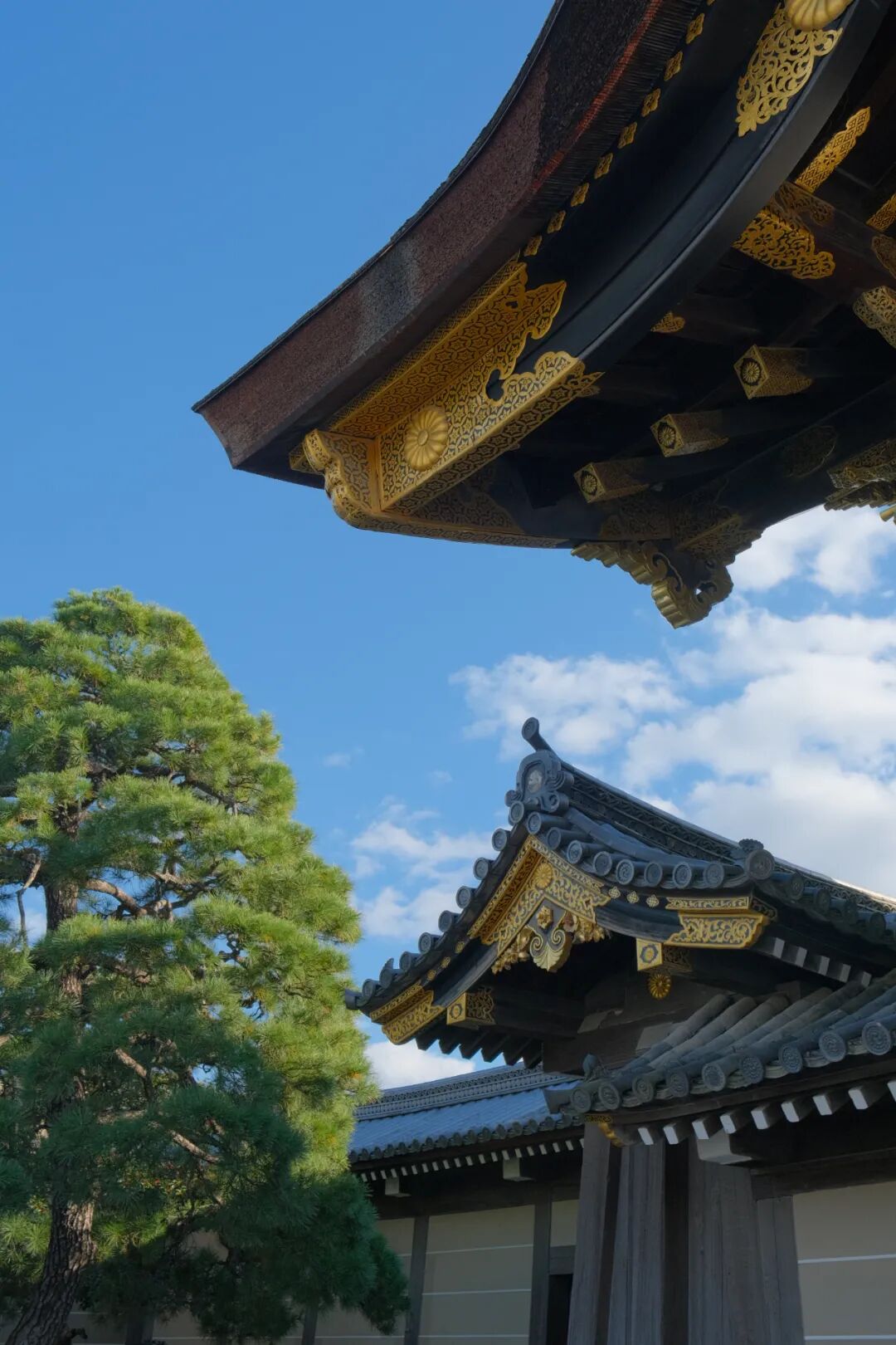 二条城的天守阁,是城堡的核心建筑,也是其最为醒目的标志。天守阁的屋顶覆盖着精美的瓦片,装饰着金色的铜像,阳光下熠熠生辉,令人叹为观止。