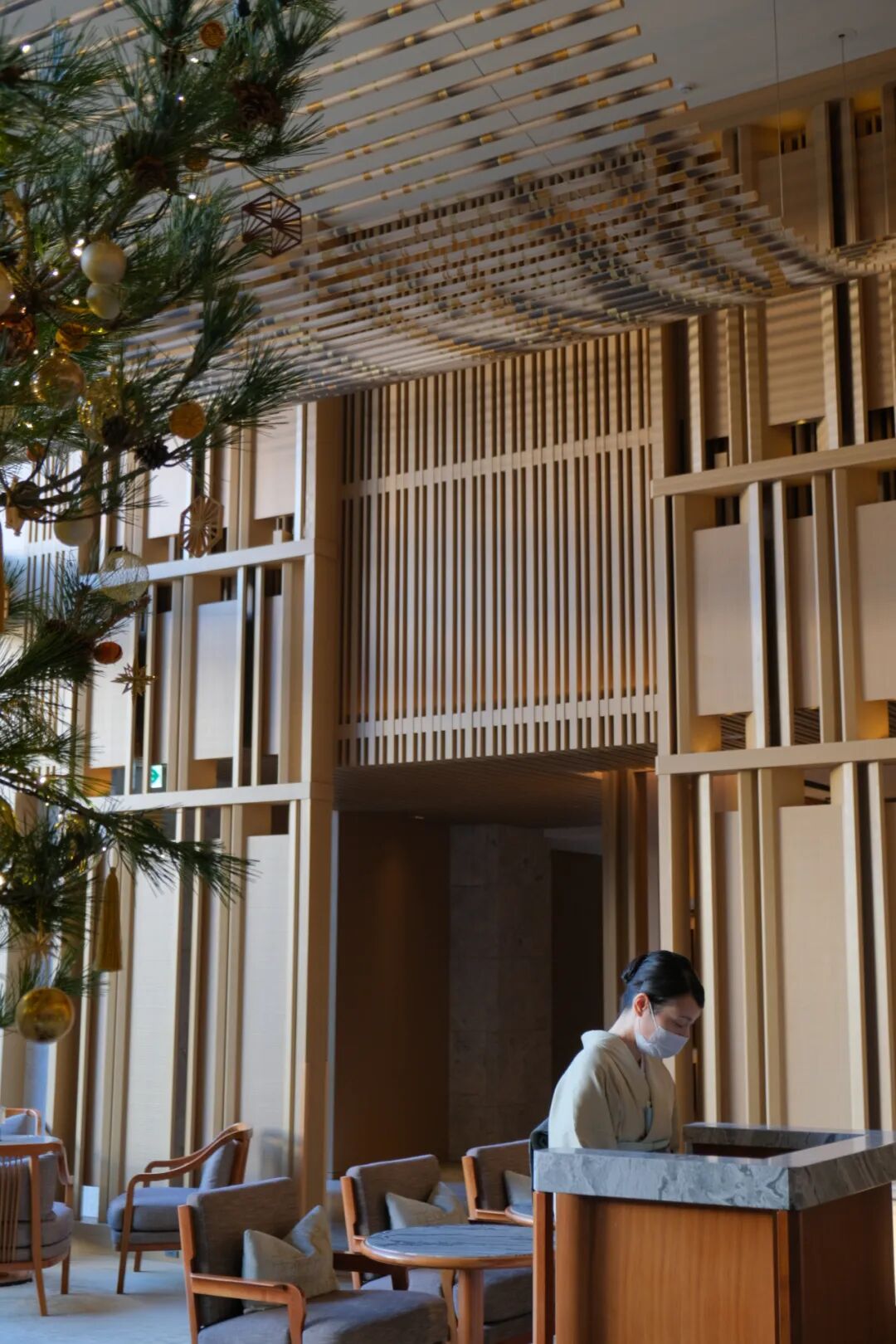 进入大堂,最先吸引我的是穿着和服的工作人员以及住客,日式内核,现代设计隐隐体现。