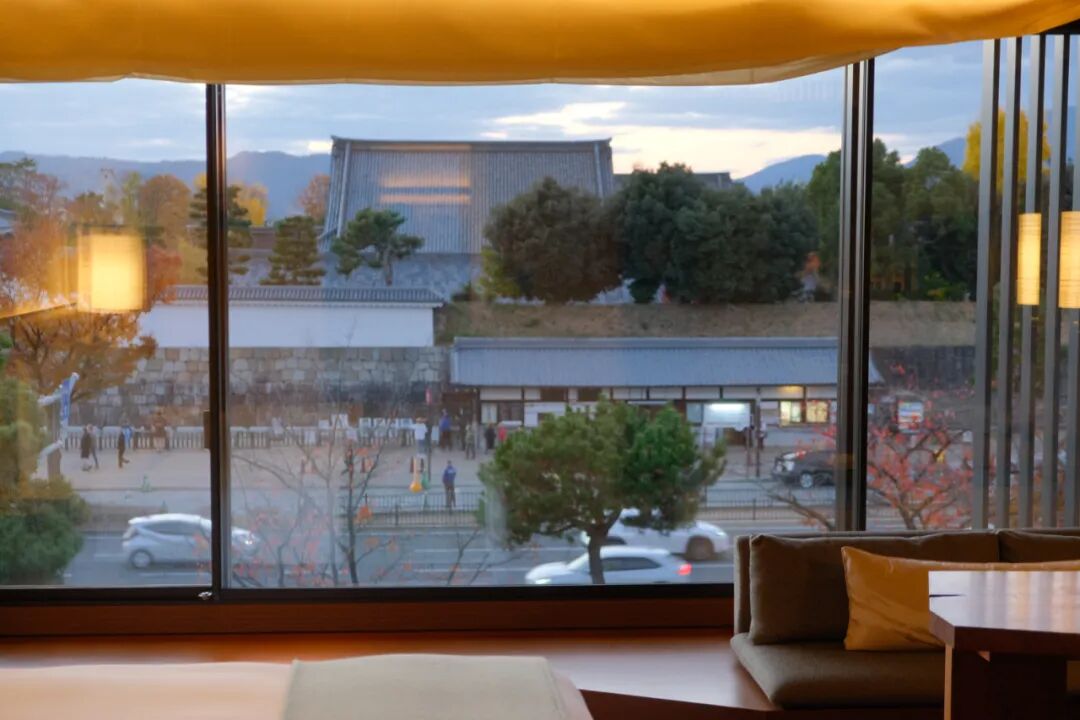 部分客房可以欣赏到二条城的美景,而其他客房则可俯瞰酒店的中庭或京都的天际线。