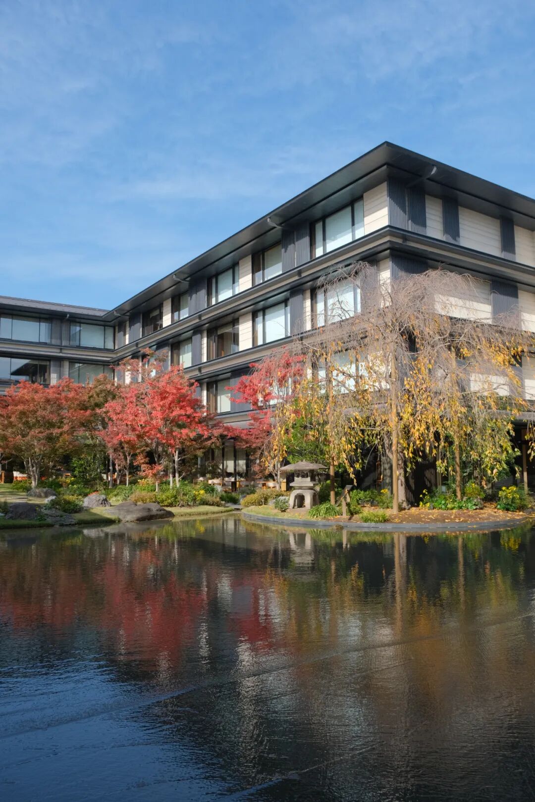 步入中庭,首先映入眼帘的是一片开阔的水池,水面如镜,倒映着周围的建筑与天空,仿佛将整个世界都揽入怀中。这里还保留了一些三井家族代代相传的珍贵文物,如古老的石灯笼、景石和踏脚石等。