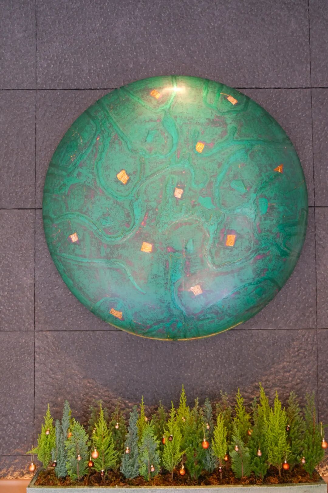 大堂最先映入眼帘的是正中间的雕塑作品。它是陶艺艺术家泉田之也所创作的有史以来最大尺寸的作品。以“风”为主题,由6片大小不一的陶器所组成。据说最大的一片有130cm的宽度,重达40kg。这件作品宛如一阵轻柔的风,穿梭在大堂空间之中。