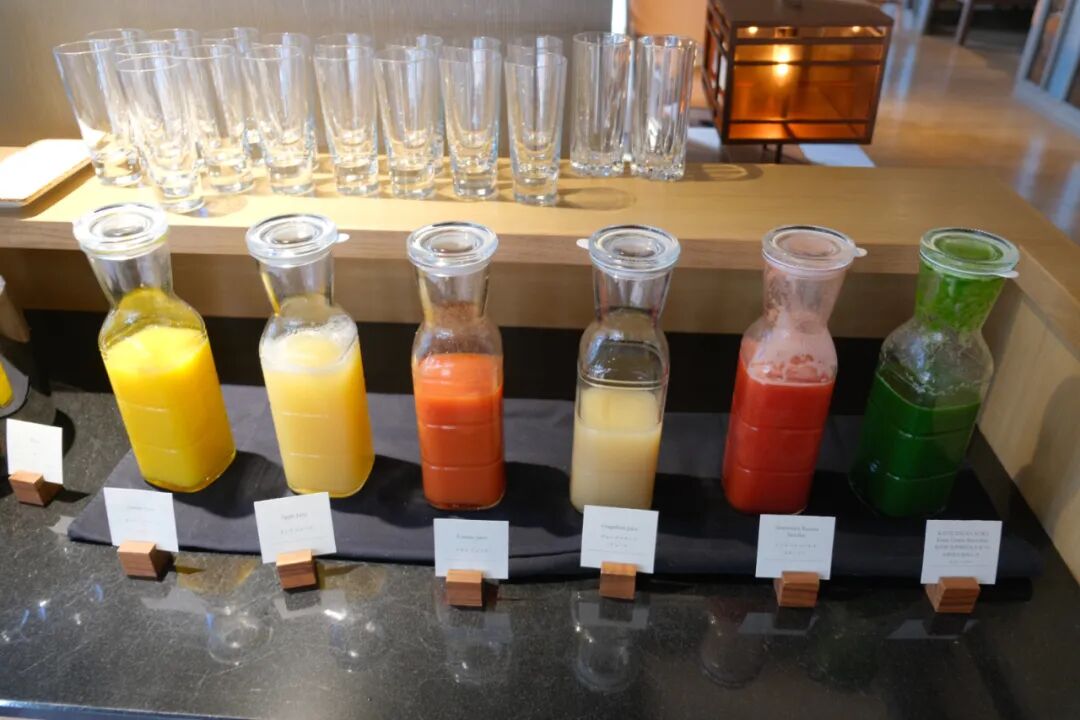 自助餐台我最喜欢五颜六色的鲜榨果汁与本地蔬菜汁(浓缩与鲜榨是我评价奢华酒店很重要的细节标准),还有各种面包,餐前菜品,西式与日式料理等。